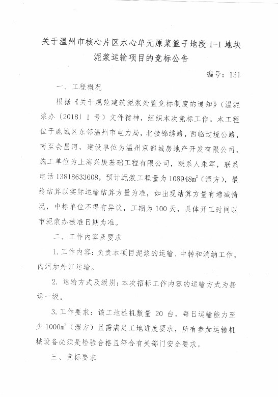¹ØÓÚÎÂÖÝÊн¹µãÆ¬ÇøË®Ðĵ¥Î»Ô²ËÀº×ӵضÎ1-1µØ¿éÄཬÔËÊäµÄ¾º±êͨ¸æ