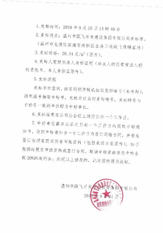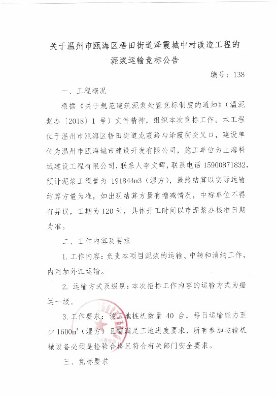 ¹ØÓÚÎÂÖÝÊÐ걺£ÇøÎàÌï½ÖµÀÔóϼ³ÇÖдåˢй¤³ÌµÄÄཬÔËÊ侺±êͨ¸æ