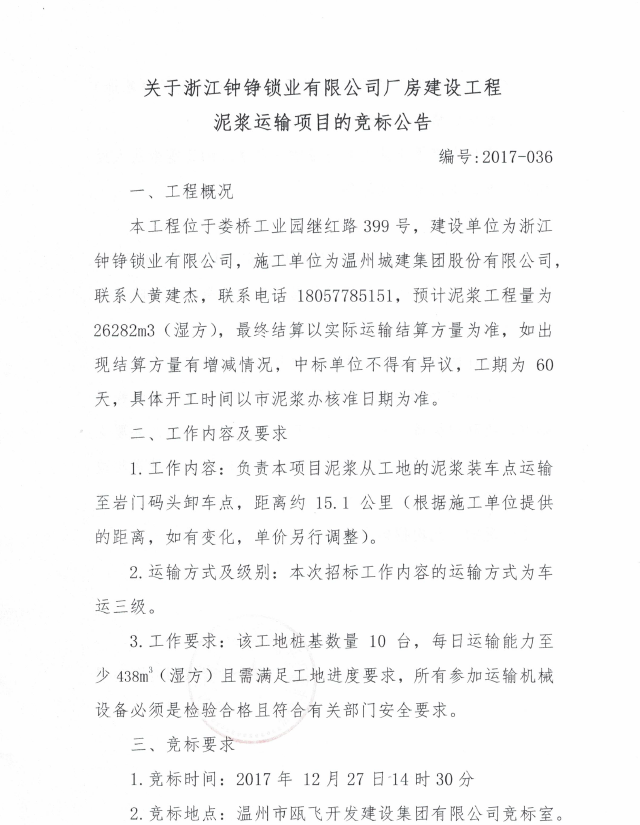 ¹ØÓÚÕã½­ÖÓï£ËøÒµÓÐÏÞ¹«Ë¾³§·¿½¨É蹤³ÌÄཬÔËÊäÏîÄ¿µÄ¾º±êͨ¸æ