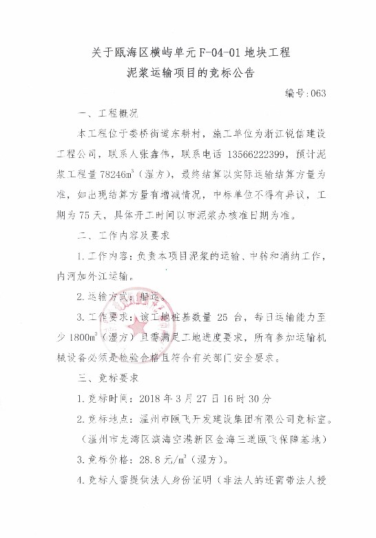 ¹ØÓÚ걺£ÇøºáÓ쵥λF-04-01µØ¿é¹¤³ÌÄཬÔËÊäÏîÄ¿µÄ¾º±êͨ¸æ