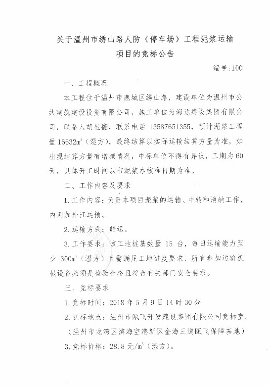 ¹ØÓÚÎÂÖÝÊÐÐåɽ·ÈË·À£¨Í£³µ³¡£©¹¤³ÌÄཬÔËÊäÏîÄ¿µÄ¾º±êͨ¸æ