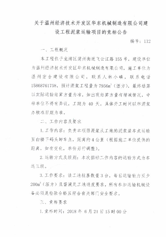¹ØÓÚÎÂÖݾ¼ÃÊÖÒÕ¿ª·¢Çø»ª¶«»úÐµÖÆÔìÓÐÏÞ¹«Ë¾½¨É蹤³ÌÄཬÔËÊäÏîÄ¿µÄ¾º±êͨ¸æ