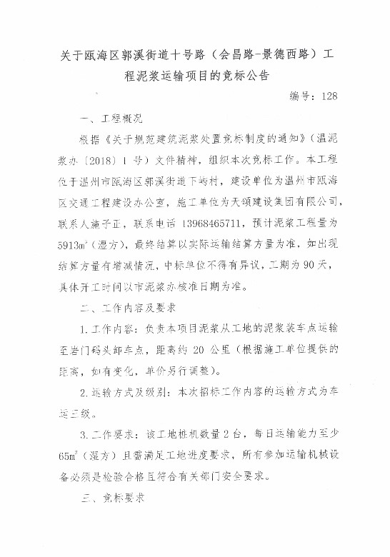 ¹ØÓÚ걺£Çø¹ùϪ½ÖµÀÊ®×Ö·£¨»á²ý·-¾°µÂÎ÷·£©¹¤³ÌÄཬÔËÊäÏîÄ¿µÄ¾º±êͨ¸æ